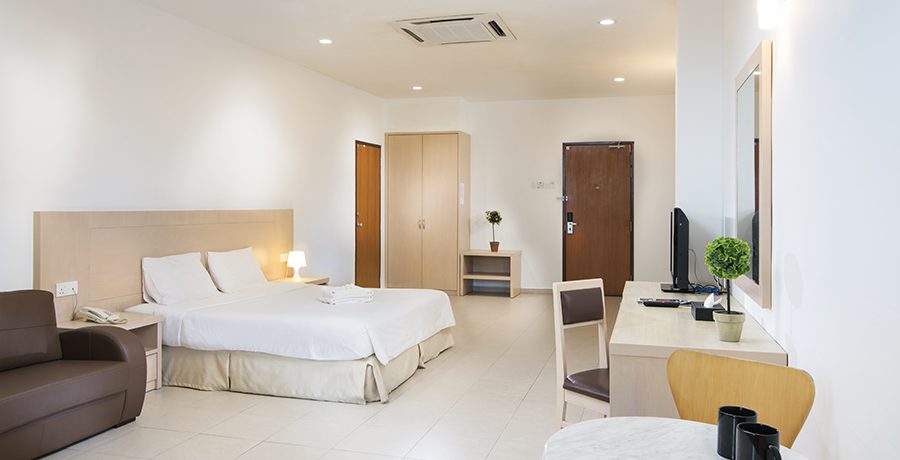 - Unit suite OYO SURABAYA yang luas dirancang dengan perabotan King Bed atau 2 x Full Size Bed (4 kaki)